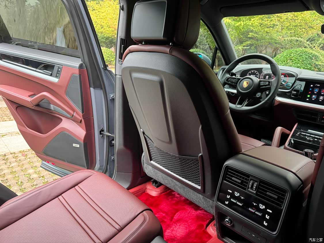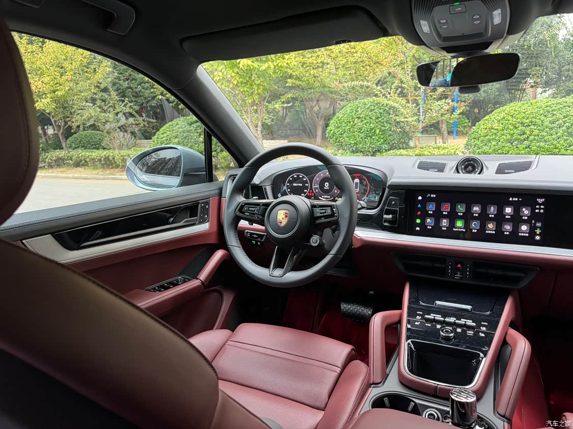 24款保时捷卡宴的内饰确实奢华豪华,高级真皮座椅、精致的缝线工艺以及独特的木纹装饰,给人一种无可挑剔的豪华感,全液晶仪表盘+副驾驶屏幕+巴克利红,给我们带来的是全新的视觉冲击感受,百看不厌,久看不疲。
