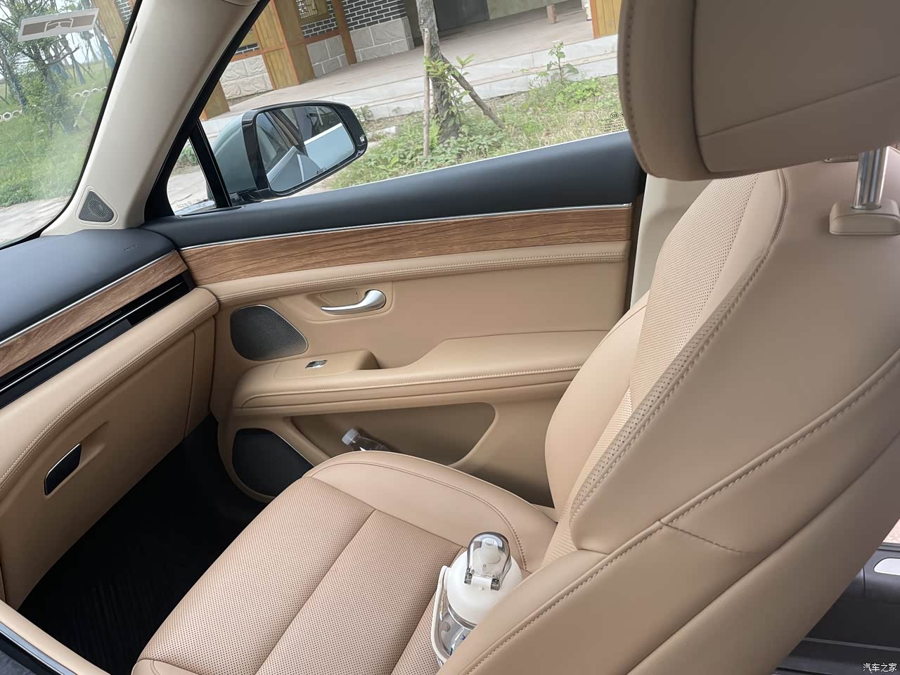 内饰:内饰木纹装饰比较显档次,很多高档车才会有木纹的装饰。真皮的座椅也蛮舒适,做工挺好的,至少我目前是没有发现有什么瑕疵的地方