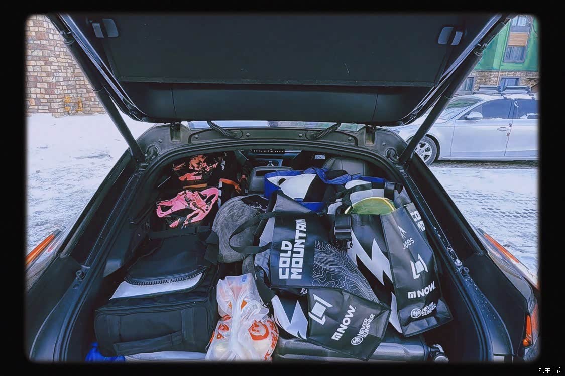 这是四人四雪板一只狗去崇礼滑雪的装备,后排放倒一个座位放雪板,前后各两人,狗坐副驾脚底,刚刚好能塞下,还不是很拥挤,真的能装!