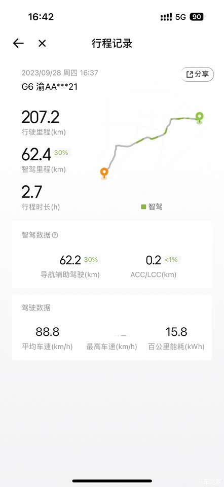 我驾驶的2000公里中,高速路段占比28%,整体平均能耗为13.2kWh/100km;高速约16.4,城区约12.5。这个电耗我是很满意的。高速路段如果使用NGP,能耗会比自己开更低。小鹏的全域800V不仅充电速率快,也能有效降低电耗,提升真实续航。我一般使用wltp看剩余里程,城区基本都是1:1,全程高速,均速100km/h的话,大约打个8折。