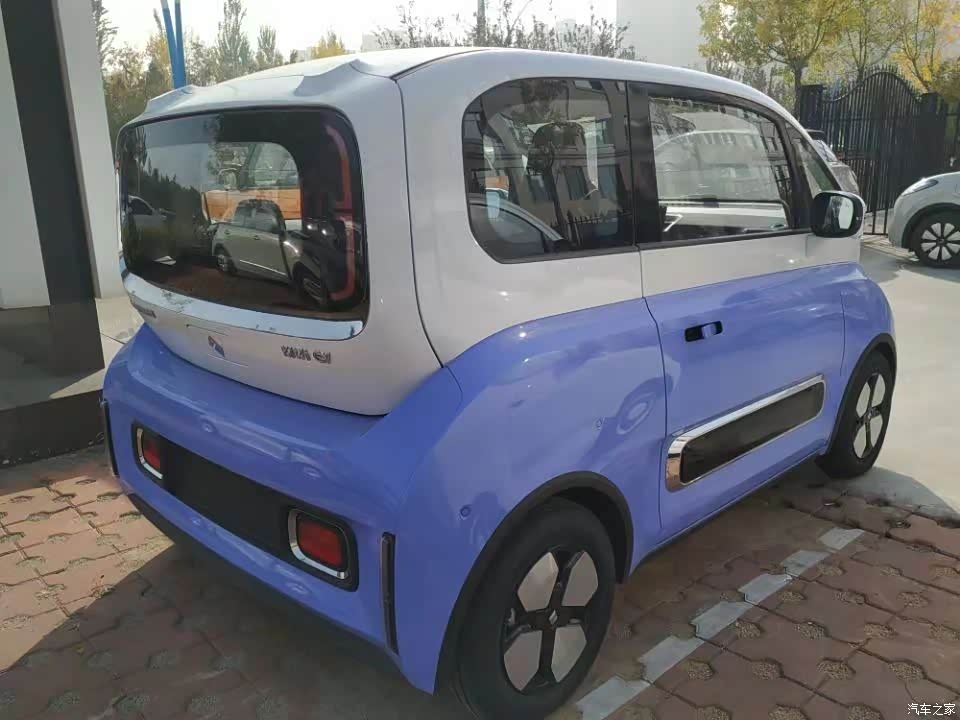外观设计很独特,双拼色,车身线条流畅,整体也不说有多好看,就是让你感觉很特别,回头率100%;隐藏式的门把手,前后车灯虽不显眼,但看起来好萌哒!