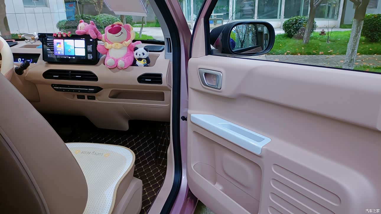 审美这个东西因人而异,我觉得小熊猫还是很好看的,试驾时候看到它觉得外观超级可爱,小巧玲珑的设计很好驾驶,萌萌的大眼睛让车车看起来真的像个小熊猫,颜色也很多,可塑性很强,回头率很高!白色的外观更干净耐看一些,我是因为粉色内饰最后选择了噗噗粉,越看越顺眼,其实这个粉色不是很深,不会显得特别俗。