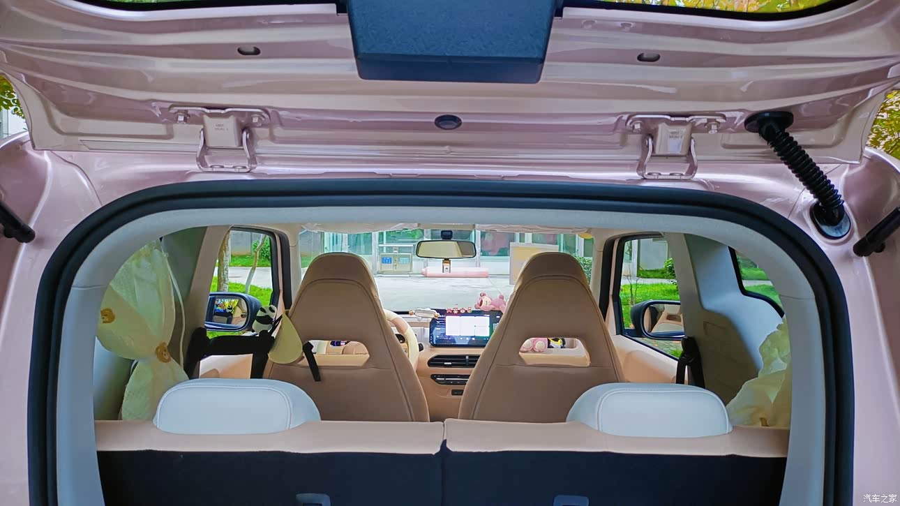 小熊猫作为mini车型,空间是有限的,储物方面有功有过吧,中控部分设计了很多储物凹槽,一大一小,足够放很多小物件,水杯、纸巾什么的是完全够了,门板两侧也有储物空间。主驾位置也很舒服,大高个完全能驾驭,后排空间也很大,完全不会挤,很舒服。缺点就是没有扶手箱,网上可以买一个自己改装,没地方放手机的话可以买个手机支架完美解决。小熊猫的后备箱比较有限,放小盒子什么可以,行李箱就放不下了。它的后排座椅是可以单个放倒的,如果确实要放大东西时候就可以放倒一个座椅,一拉就倒很方便。