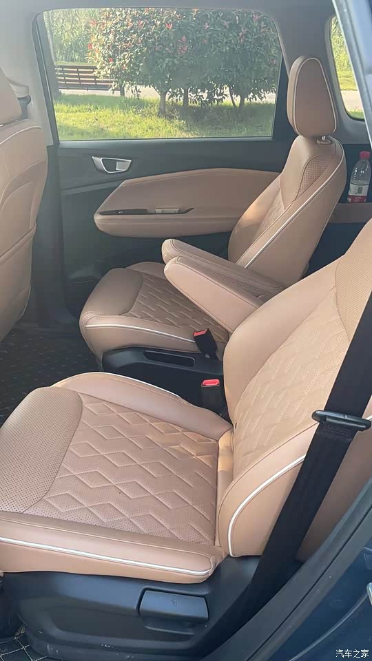 空间是七座的座椅,前两排的空间是很大的,而且座椅都是独立式的,所以人坐在里面也会更加的舒服,最后一排是连着坐的三个人一排,坐满的话,可能稍微会有一点拥挤感,好在它的座椅长度和宽度都在线,所以乘坐空间给我带来的体验感还是比较棒的。