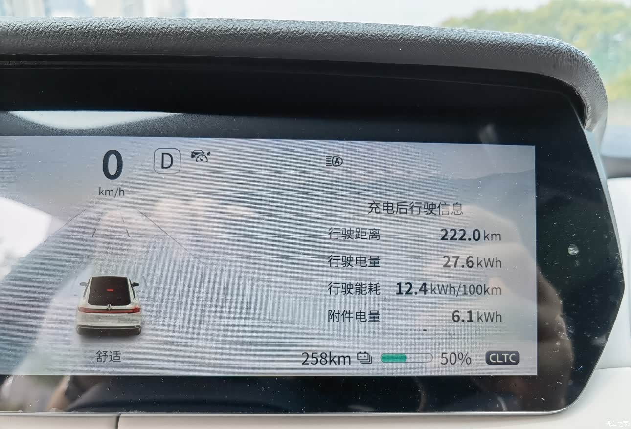 温度在15-28度,满电跑到电量一半,行驶距离为223公里,乘以2相当于445KM。