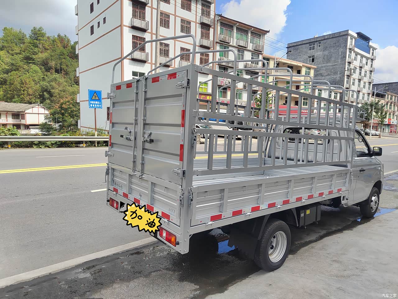 最满意的就是这车的空间足够大,我选的是单排的,货厢够长,拉货拉的多;另外这车动力也不错,多拉点也没有什么压力,跑高速的时候也比较稳,车一点也不飘。