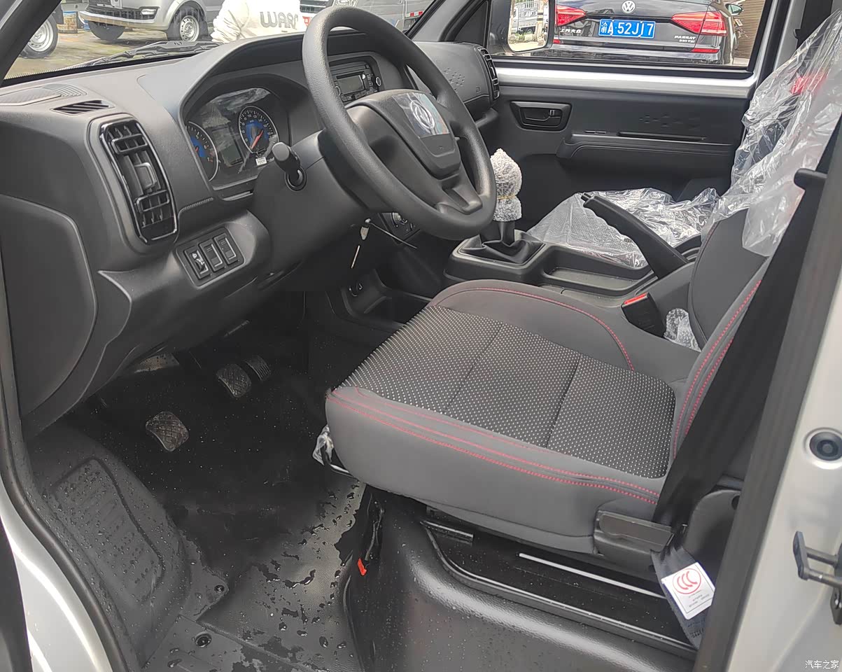 内饰比较简单,中控布局合理,座椅是织布的,配色挺好看,拉货的车主要还是经济实惠,结实耐用就行。