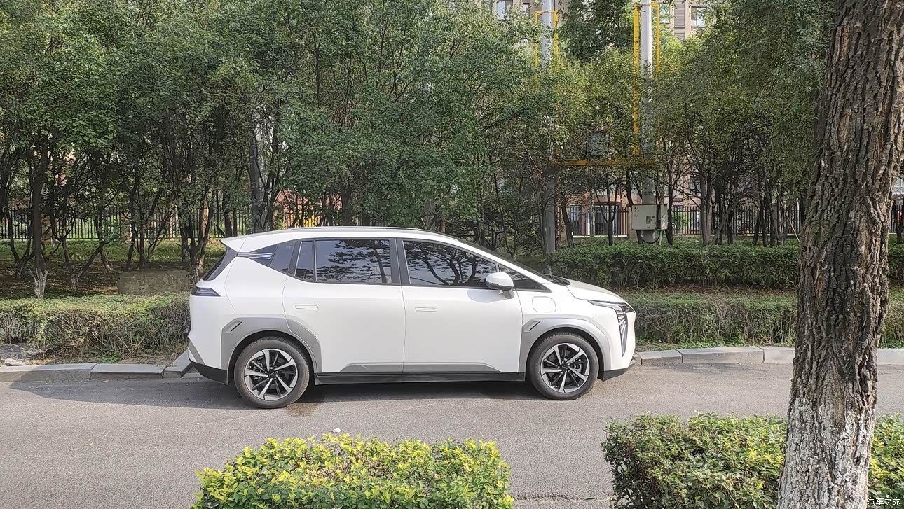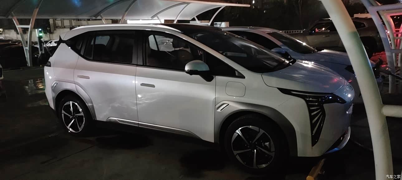 埃安这款车这个腰线设计真的是非常的时尚啊。而且还带有一些机甲风,确实这个侧面走这个车特别的帅啊,但是真的是非常的炫酷。再加上车身这个轴距非常的长啊,整个显得这个车挺大的,其实你别看这个,这算是一个两厢的车啊。