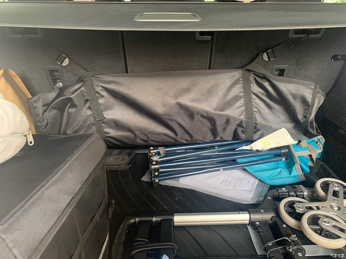 后备箱空间还是挺大的,常用箱子外代驾折叠电动车也没问题,二排推倒存放量更大。