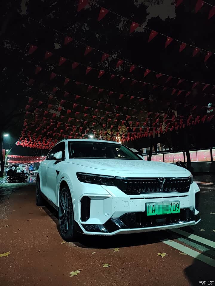 外观因素见仁见智。我选择的车是白外红内,美曰典雅。 车辆定位中大型智驾suv,车长4900+已经足够大了,却不显大,是低趴的造型矮壮不显大。圆润的大屁股是值得仔细品味的。 熏黑的五幅轮毂,原装刹车卡钳有点小,加装了两套白色卡钳罩,优雅加倍。 总的来说,黑武士帅,浅蓝秀美,白色多雅致 颜色选择方面能多一点就好了,当初好想要个镭射银呀