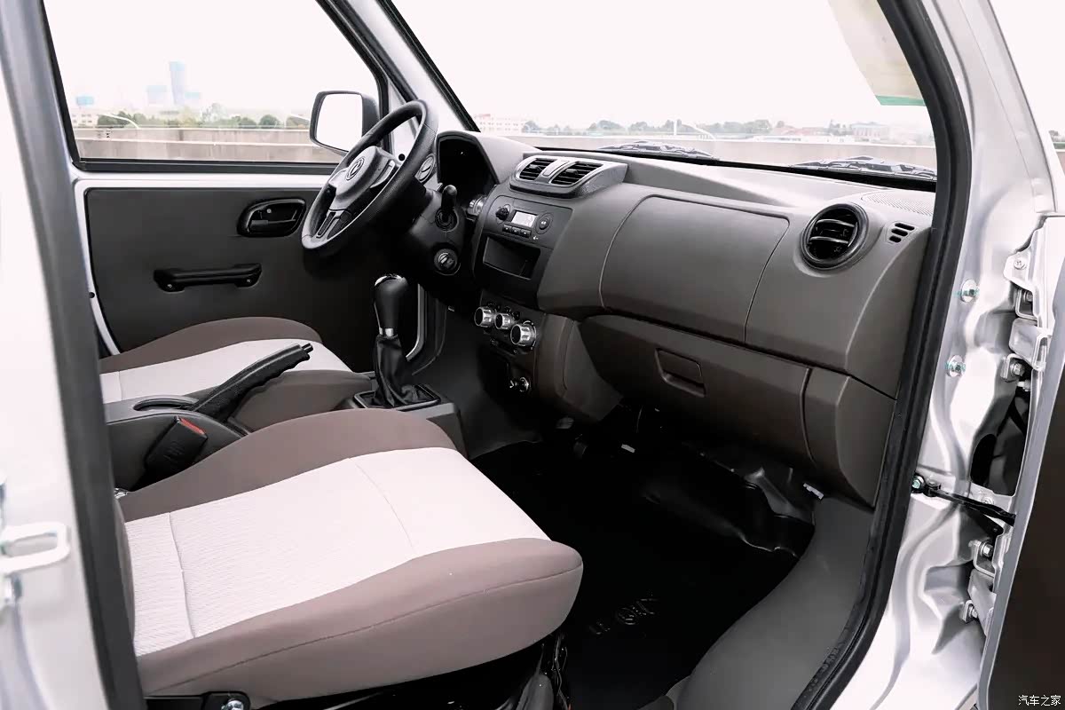 坐在驾驶位开车的时候空间感很舒适,没有一点的压抑感,双腿可以所以活动,而货箱看着也够结实,能装货,对比很多同级车它的承载能力都尤为优秀。