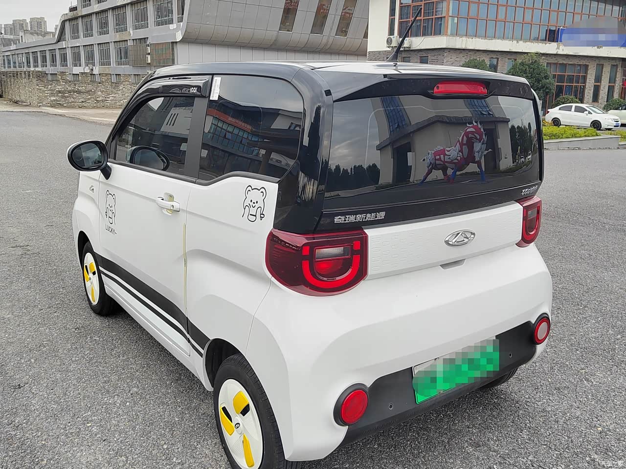 家附近离公交站比较远,平时上下班一直是两轮电瓶车出行,一是因为安全问题,二是因为冬天太冷了,所以考虑入手一台小电车,去看了同级别的销冠五菱MINI神车,也对比了诸如小蚂蚁、奔奔e-star、零跑T03等等,但看到QQ冰淇淋时,外观一下子就戳中我了,微笑大灯我真的超可爱!!!尾部的设计像一个冲锋的小战士,白色的漆面和轮毂,配上黄色的花瓣真的有种清新脱俗的感觉。