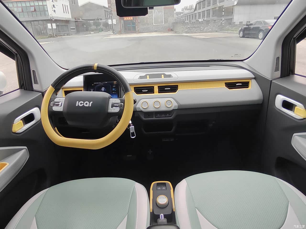 有句话说的好,麻雀虽小,五脏俱全,空调、后视镜操作很顺手,方向盘的大小也很合适,就是内饰的用料稍微差了些,塑料感有点强。