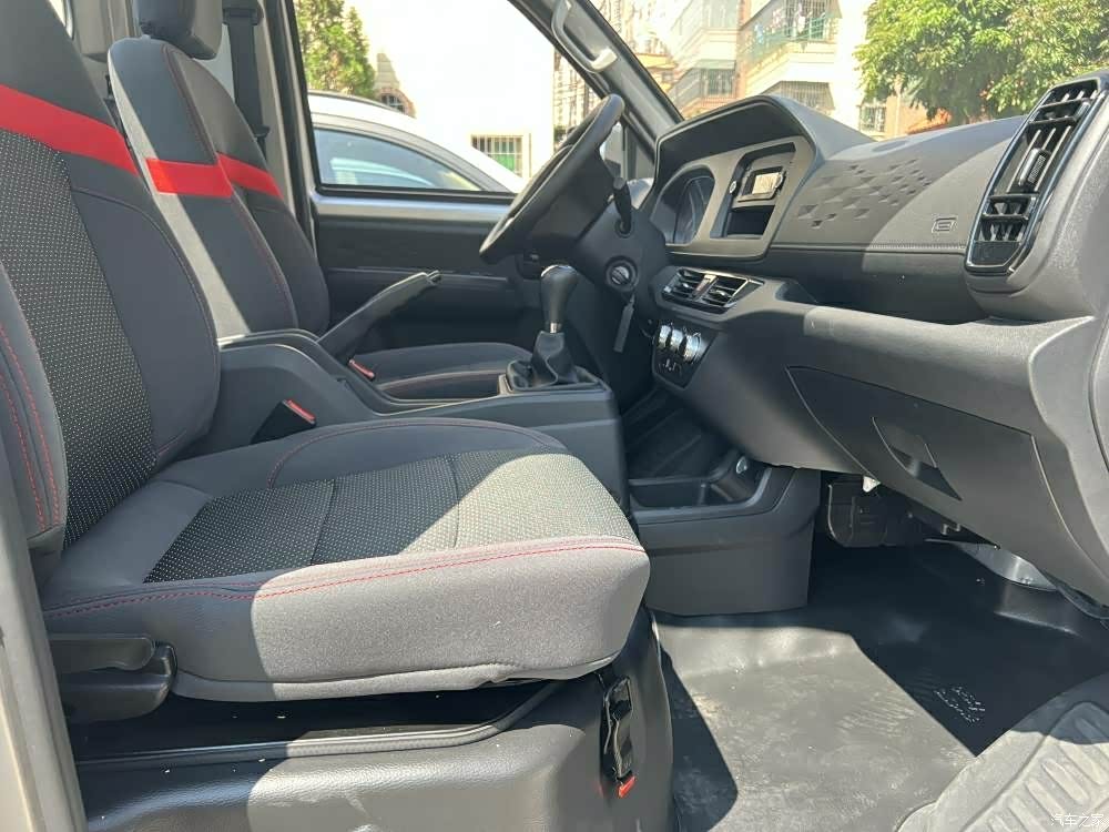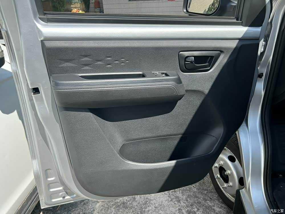 车子的货箱空间还是挺大的,可以放挺多的东西,而且前排坐两个人的话也很轻松,对了,车子它的门上还设计了储物格,用来放矿泉水或者保温杯都很方便。
