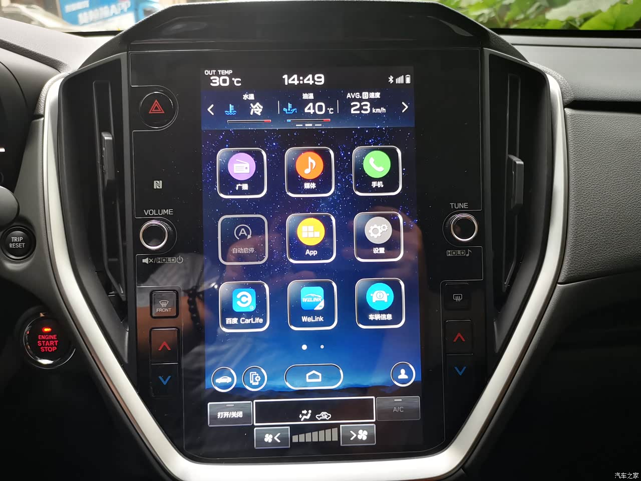 车机的大屏幕显示,操作起来很方便,有carlife和welink,导航更方便,对于安卓手机需要有线连接(注意要用原装的数据线,非原装线容易连接失败),影响不大,也能接受,苹果手机可以无线连接carplay,会更好。有倒车影像,没有360全景影像,但对于老司机的我,影响不大,很少看。 最喜欢的配置是CROSSTREK旭豹搭载了3目摄像头的EyeSight视驭驾驶辅助系统,融合了防碰撞制动系统、车道居中保持/前车跟车转向、全车速自适应巡航控制系统(ACC) 、车道偏离修正辅助以及紧急自动转向辅助功能,主动安全方面的表现也非常出色,在城市道路,高速路都用过,全程手握方向盘,脚可以放松,不用踩刹车和油门,自动跟车,加速减速,刹车,感觉很平顺。