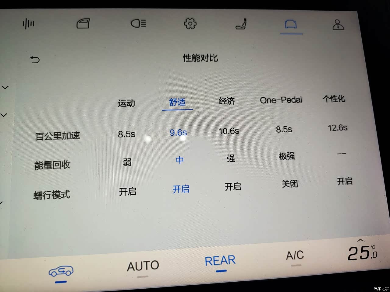 就我个人而言,我一般就是城市代步,上下班,偶尔郊游,所以基本都是舒适模式在跑,初始动力响应很快,提速很轻说,运动模式提速就会快很多,有推背感!性能对比上图