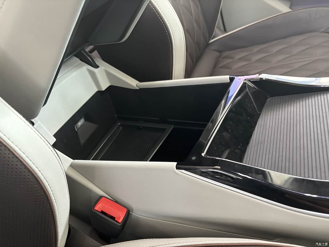 中大型SUV,接近3米的车身轴距,后排空间完全不用担心,哪怕是我183cm的身高,做后排感觉都是非常宽松,随意跷二郎腿。车内的垂直高度也是非常充足的,加上全景天窗,整个空间感很强,视野非常开阔。前后排都配了中央扶手,有杯架,平时出去车内放一些水杯、小东西很方便。前排中央过道设置了两块盖板,细节非常合理,平时关上可以把手机直接放在上面,即使驾驶比较激烈也不用担心会滑落,要装一些稍大的东西的话,打开盖板也没问题。
