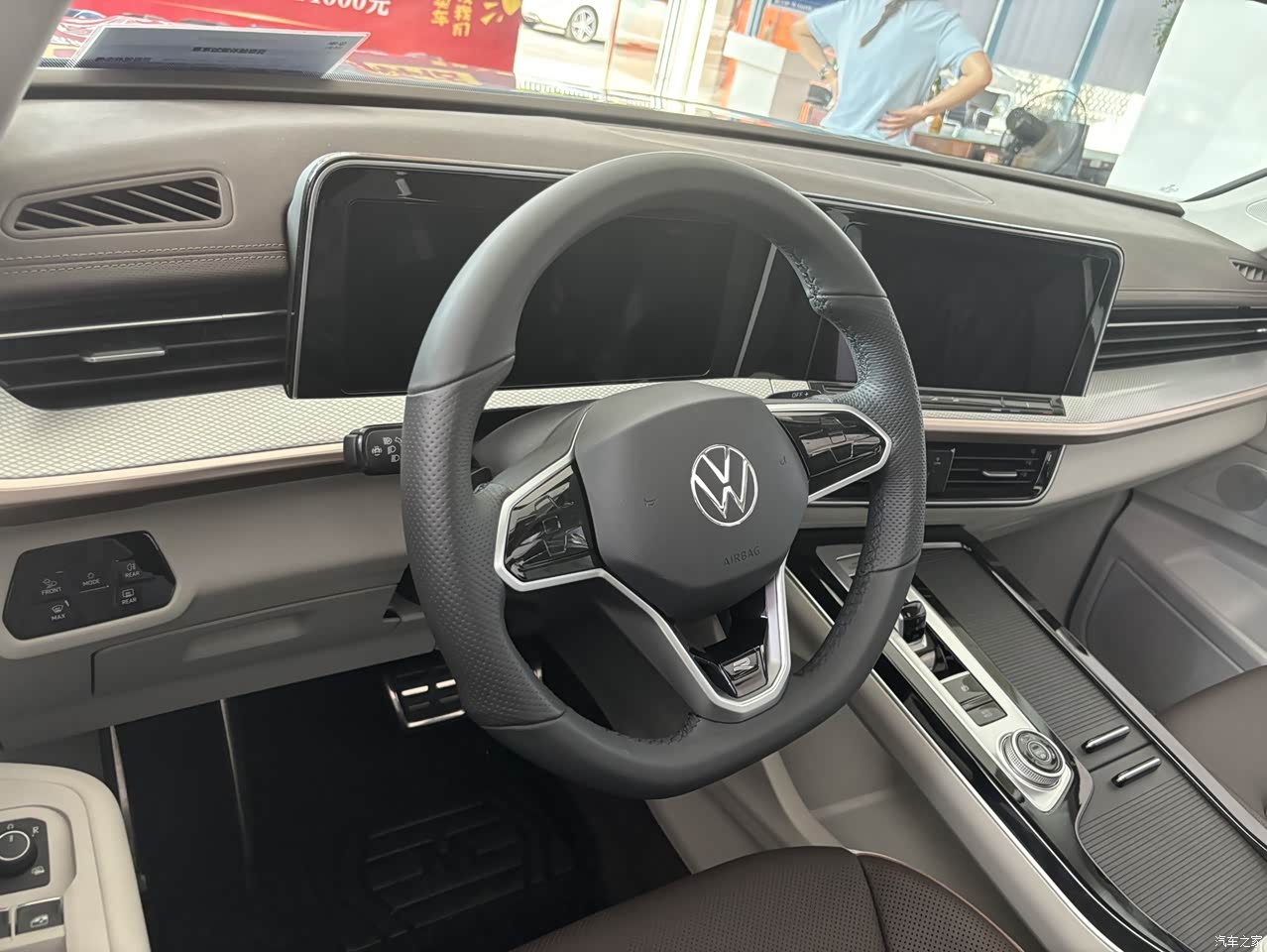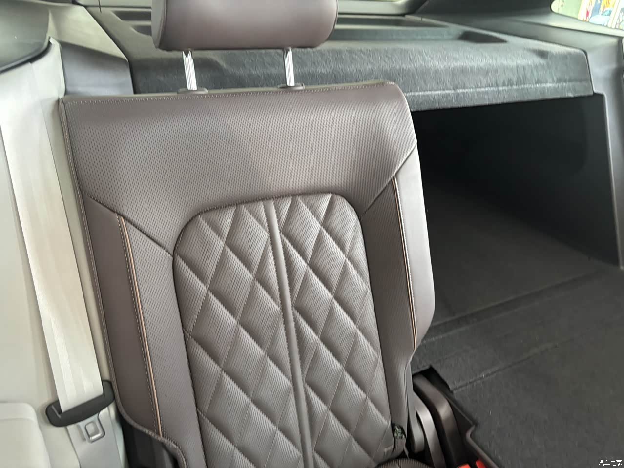 中控造型还挺好看的,双联屏的显示效果很好,贯穿式的出风口让中控台变得有层次了起来。不过揽巡减掉了大部分实体按键,很多地方都是用触控的形式,用起来会觉得不太方便,也没觉得要比实体按键好看什么,这一点算是退步。用料方面,我挺喜欢它的烤漆饰条的,虽然只有中央过道这一小部分,但细节有种画龙点睛的感觉,很上档次。做工方面,大众的发挥还是一如既往的稳定,手套箱有阻尼,推拉的盖板也是如此,细节处理很到位。此外,新车状态下,内饰没有明显异味,环保性方面也是挺好的。