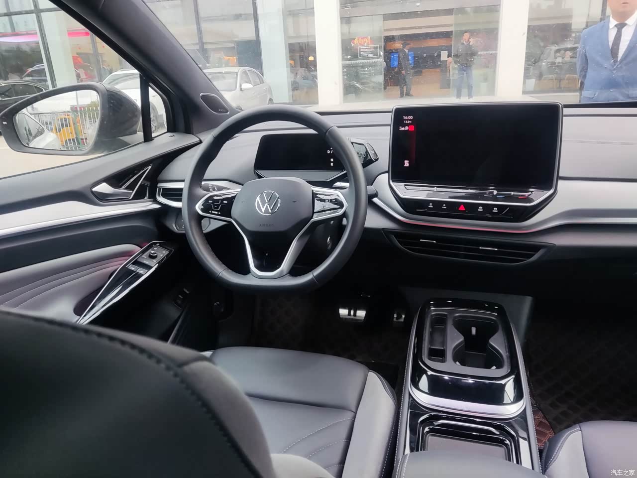 大众ID.4 CROZZ的内饰也是以简洁时尚的设计风格为主,车内配备了全液晶仪表盘和悬浮式的中控屏,5.3 英寸数字仪表、12英寸中控屏、