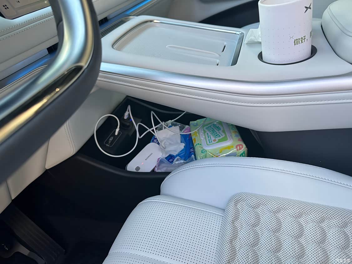 空间亮点发现有两个:第一个是前排中控下方有巨大的储物空间,可以放很多日常的东西,并且有遮挡,不会显得杂乱;第二个是后排中央扶手中间还做了一个储物,让长途出行的用品也有地方放。