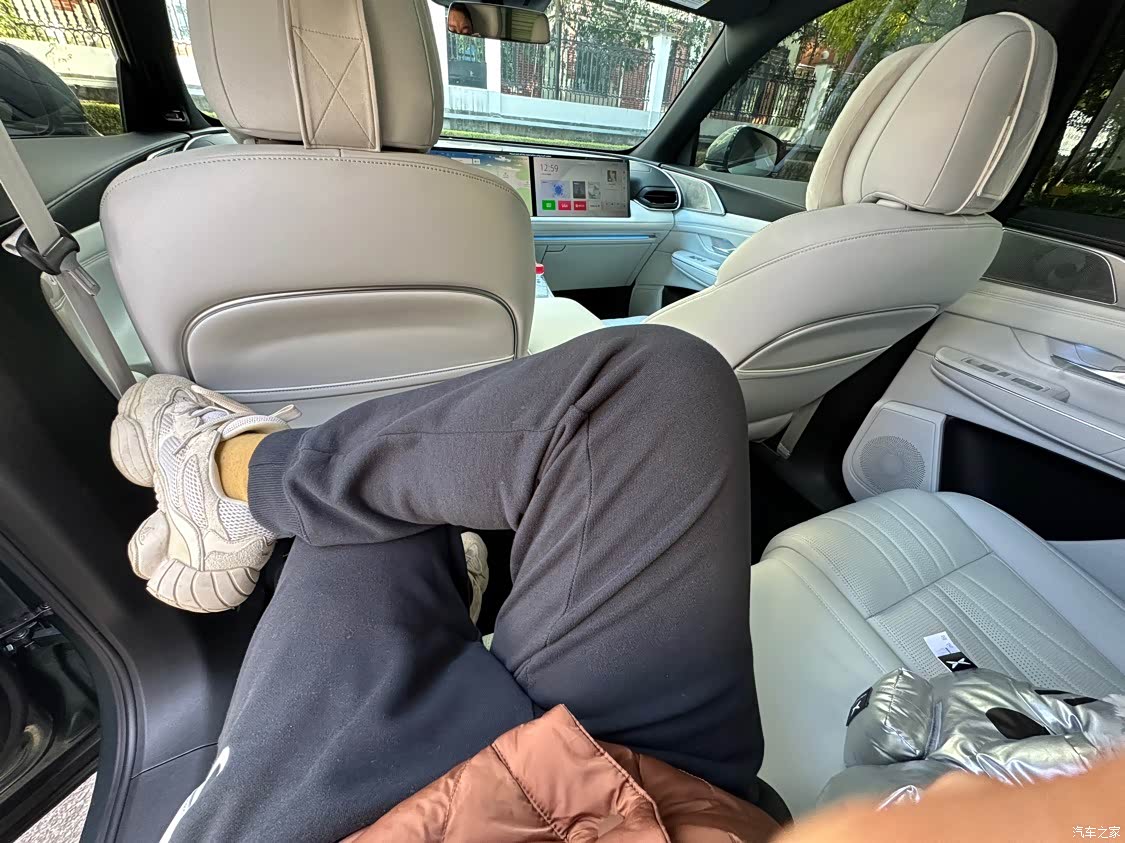 乘坐空间没得说,在驾驶员正常座椅下,第二排空间非常宽敞,来个二郎腿或者葛优躺都可以,副驾女王座椅是我老婆的专属躺平