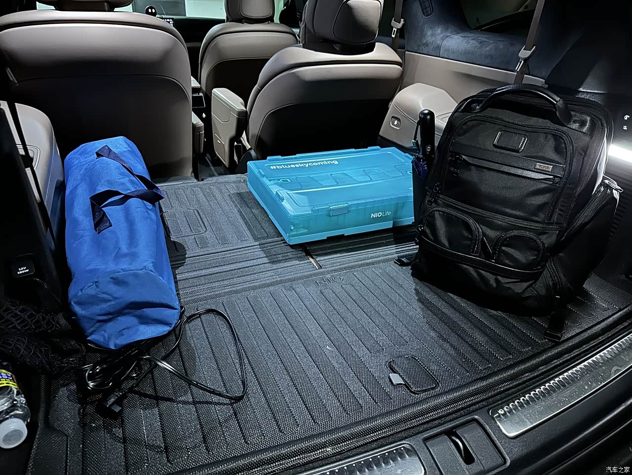 蔚来的座椅非常的宽大,加上nappa的真皮,软硬适中的座椅,在长途出行时会更加舒适,suv的高度让人可以居高临下的悠闲开车。 第二排两个座椅也是同样的宽大,完全是行政级别。 第三排一般是放到,用作后备箱,使用率较低,一般一家人出行,带上保姆也只需要4个座椅,最后一排完全是应急作用。 车内的储物格有5个,中控下方还有一个很大的空间可以放置物品,储物空间完全够用,中控下方可以买一个分层的隔板,空间立体化后会更好用!