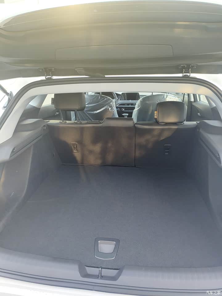 让我比较惊喜的还是这个后备箱的空间,里面也有暗藏式的储物格,上面这一排的空间还是很宽敞的,后备箱可以放的东西也比较多,你像平时拉着孩子出去玩玩什么的我,放婴儿车什么都是完全没有问题的,后备箱的容积还是比较大的。