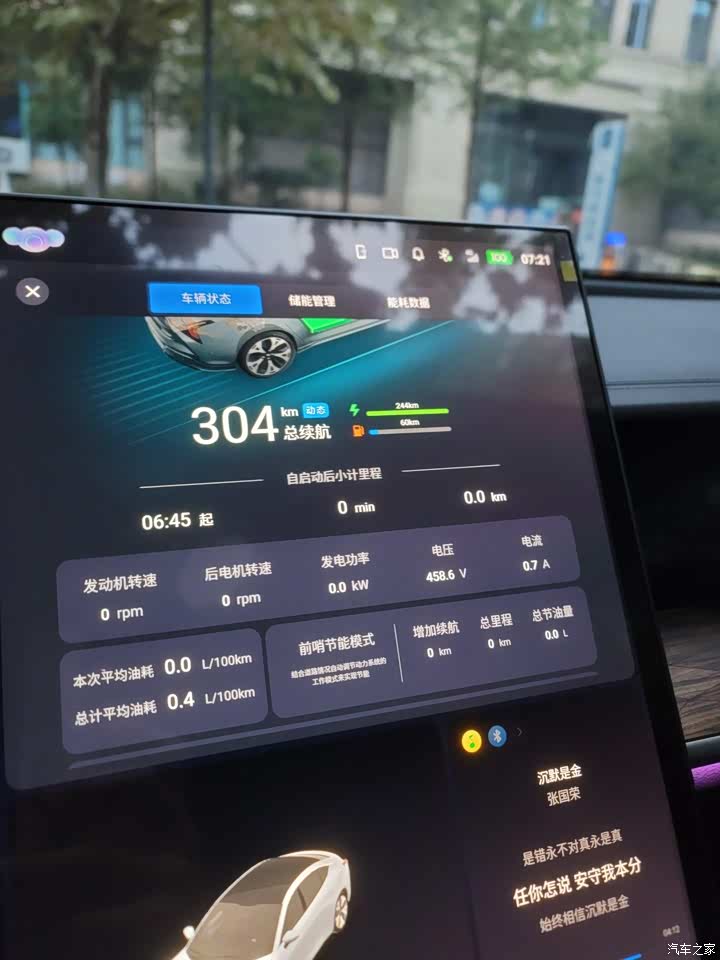 开了6000公里有电的情况下,高速7.8个油,没电还跑高速就10个往上走了。纯电我可以跑240,差不多就要去找充电桩了【