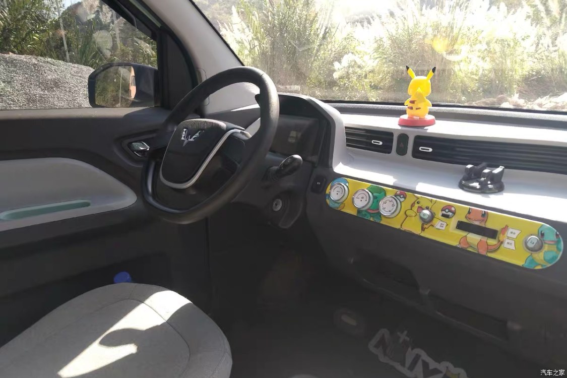 外观很好看,我们一家三口都很喜欢,像个小型面包车模型一样,车子的颜色是马卡龙色系的,很适合年轻人,我老婆还开去贴了贴纸,车子更可爱更有意思了,很多人买小型新能源车都会加上自己的创作,跟个大玩具一样。