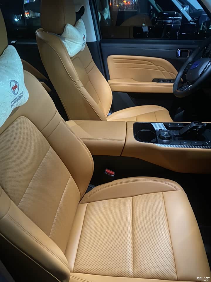 内饰简单大方 特别是黑棕配色 看着很舒服 座椅用料也不错 吸引我的是这个钢琴按键 用起来方便 前面的有车友说塑料感很强 我觉得自己后期装扮一下还是很漂亮的 毕竟长城这个品牌 确实把钱用在看不见的地方 比如三大件还有它这个hi4 另外这个座椅通风加热很不错 还有它的升降式杯托 做得特别细节 挺到位 相当人性化!