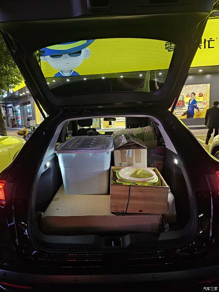 后备箱超级大,把后排放倒直接可以铺床自驾游了,当时看中这款也是因为看了网上把后排铺到后的整体效果图,后排魔术座椅非常nice,座椅放上去空间又增大了很多,几个1.8米的坐进去都不觉得压抑。