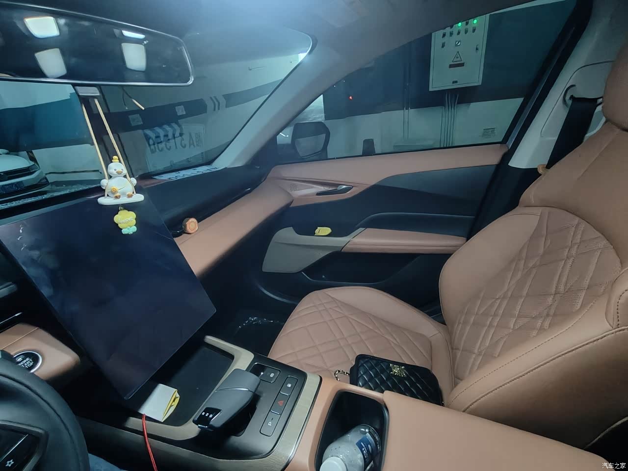 内饰确实还可以不是那种很 low 的,但是也不算很高档的,对得起这个价格。摸起来还是很舒服,大面积的软包,但是新车味道确实挺大的。 空调的效果还可以,可以提前热车和冷车,这个功能试过两次,1-2 分钟就可以把车内变得很热很暖和。