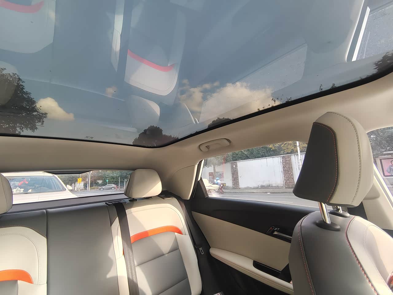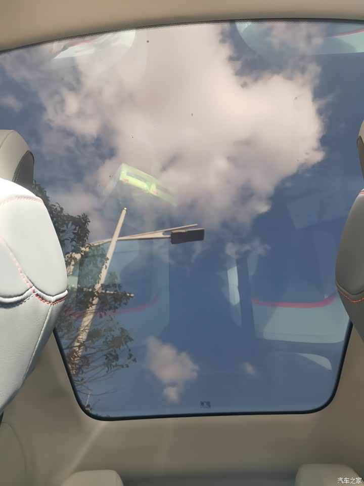 欧标的车果然够环保,新车一点味道都没有,内饰整体偏朴素,双拼色的座椅还算耐看,前排中间的储物空间设计不错,常规USB之外还配有无线充电。旋钮式换挡按键和物理按键的设计,操作很方便。还有全景天幕,蓝天白云就在头顶上