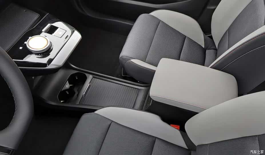 前排中间有个小储物空间,盖子可以拉开盖上,平时放点小东西很方便,也不影响车内整洁度