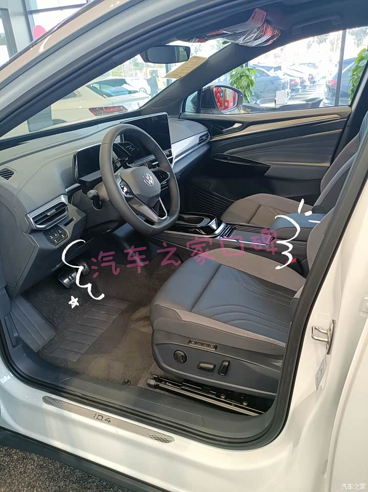 主驾驶坐姿很高,刚开始有点不适应,后来销售帮我调整了座椅高度和前后间距,就舒服多了。而且我发现电动座椅真的很高级也很方便,原来这些配置真的可以给人带来非常好的驾驶体验。我家几个人个头都不大,ID4 CROZZ从空间上来说很宽敞,后排不仅腿可以伸开了,而且还可以非常舒服的靠在后面,头部还有一拳没有到顶,顿时感觉钱花哪儿哪儿美。前排的储物空间很多,扶手箱也很大,假如能再有个眼镜盒,那就更完美了。后备箱配备了电尾门,在我手里拿了很多东西的时候就特别的方便。