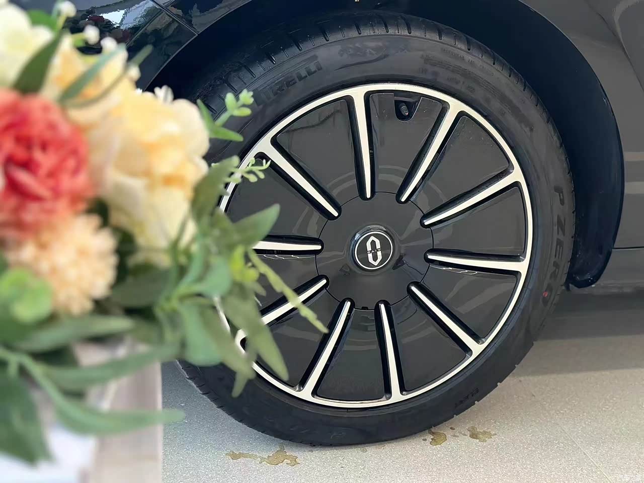 它的外观设计非常大气,车身线条优雅流畅。我选择的是黑色车型,看起来非常稳重大气。车身的颜色与蓝色蝴蝶结和鲜花的搭配也非常和谐,让人眼前一亮。