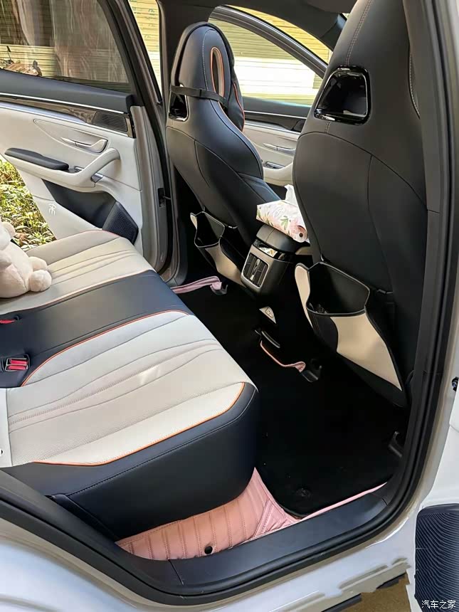 车后排地板是纯平 整体前排后空间够用 即使人在后排坐着 坐在中间人也不会拥挤