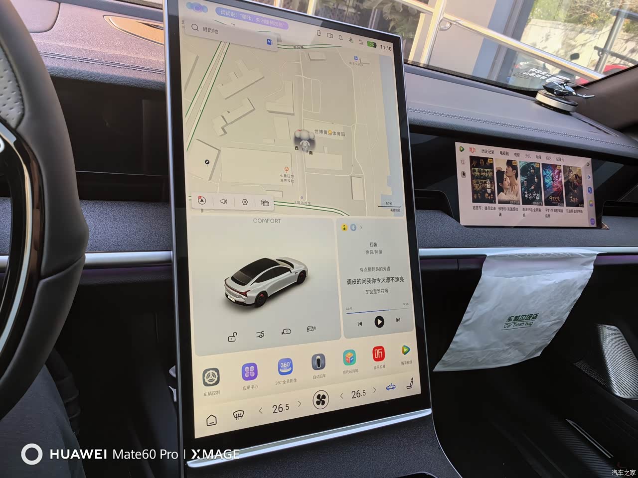 哪吒S的内饰堆料还是十分足的,大部份地方都是皮质材料,值得好评的是门板上侧用的也是皮质,没用塑料,这样无论观感还是手感都有提升,主驾三块屏幕科技感十足,后排中控和座椅也有液晶显示屏。座椅柔软度刚刚好,坐上去挺舒适的。中控台虽然没有实木用料,但整体看上去给人的感觉还是很高大上的。做工方面也没有发现有小的做工问题,内饰方面性价比很高