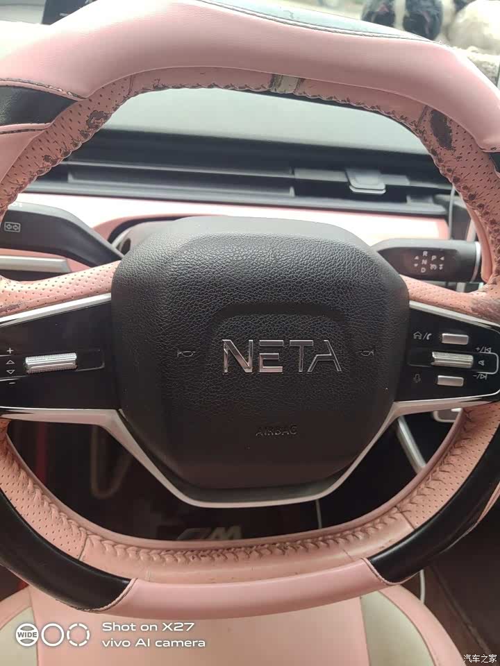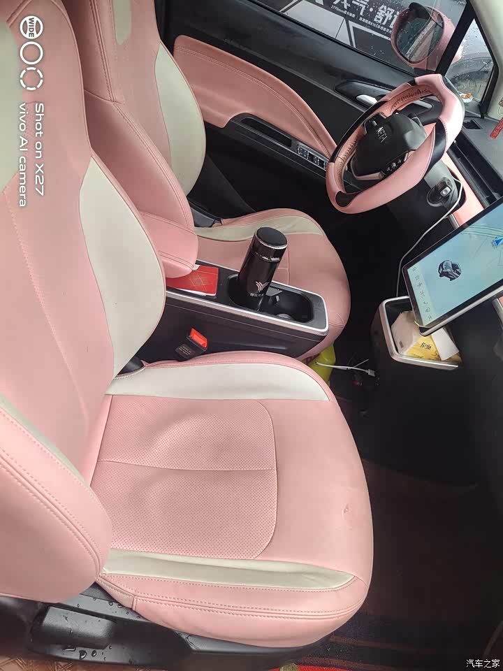 内饰粉粉嫩嫩的,14.6英寸的智能中控大屏并且厂家还很贴心的每个月给了五个g的流量。导航的流量是终身免费使用,还支持ota终身免费更新