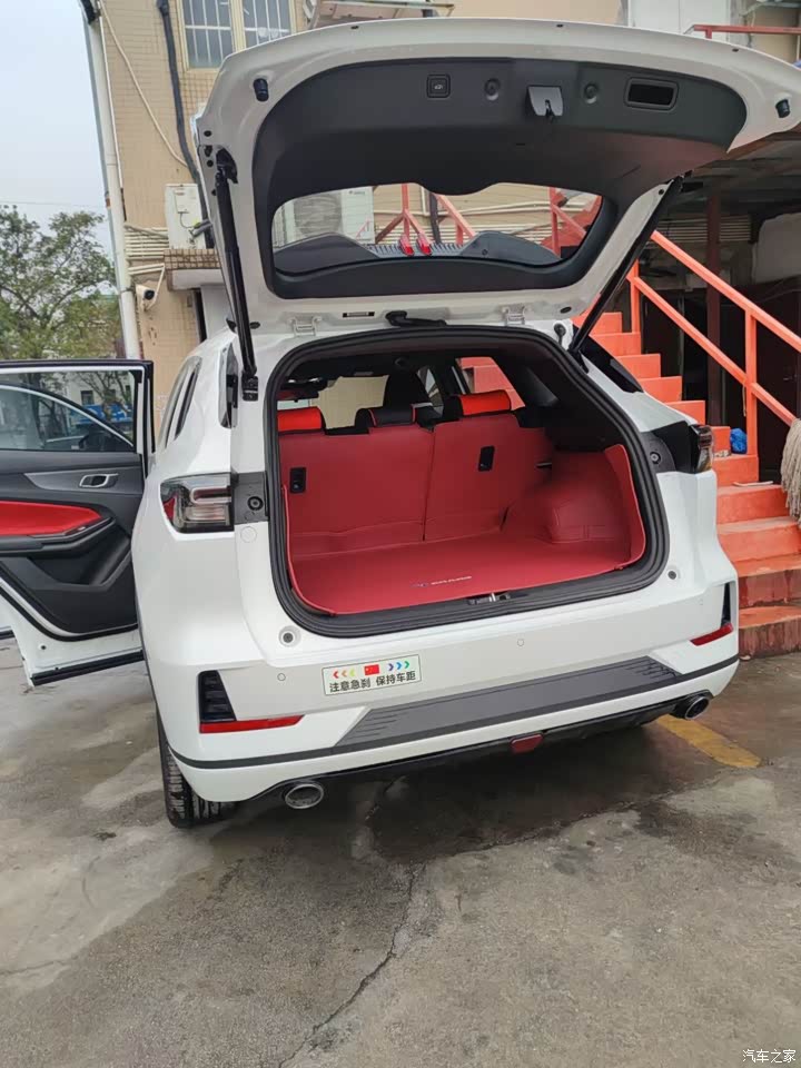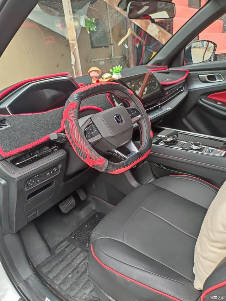 这款车的内饰有一个神秘红,一个极速红。我订车的时候4s店里只有神秘红,但我感觉神秘红这个颜色不太好看,有点像砖头颜色,看着比较老气,于是我预定了一台内饰极速红的,就是红黑配色的。用料还算厚道,该点缀的有点缀。座椅舒适性有支撑感,还算舒适。不会是坐上去软绵绵的那种。