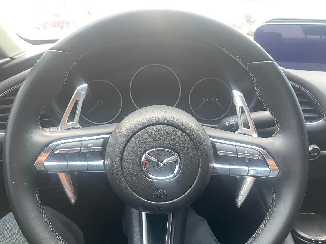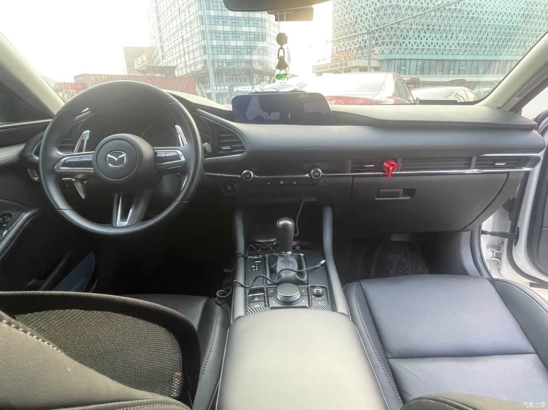 黑色的内饰,整体设计简洁大方,没有复杂多余的按钮,用料方面能感觉到马自达的良心……手能摸到的地方基本都是软的,不像其他车辆塑料感强!