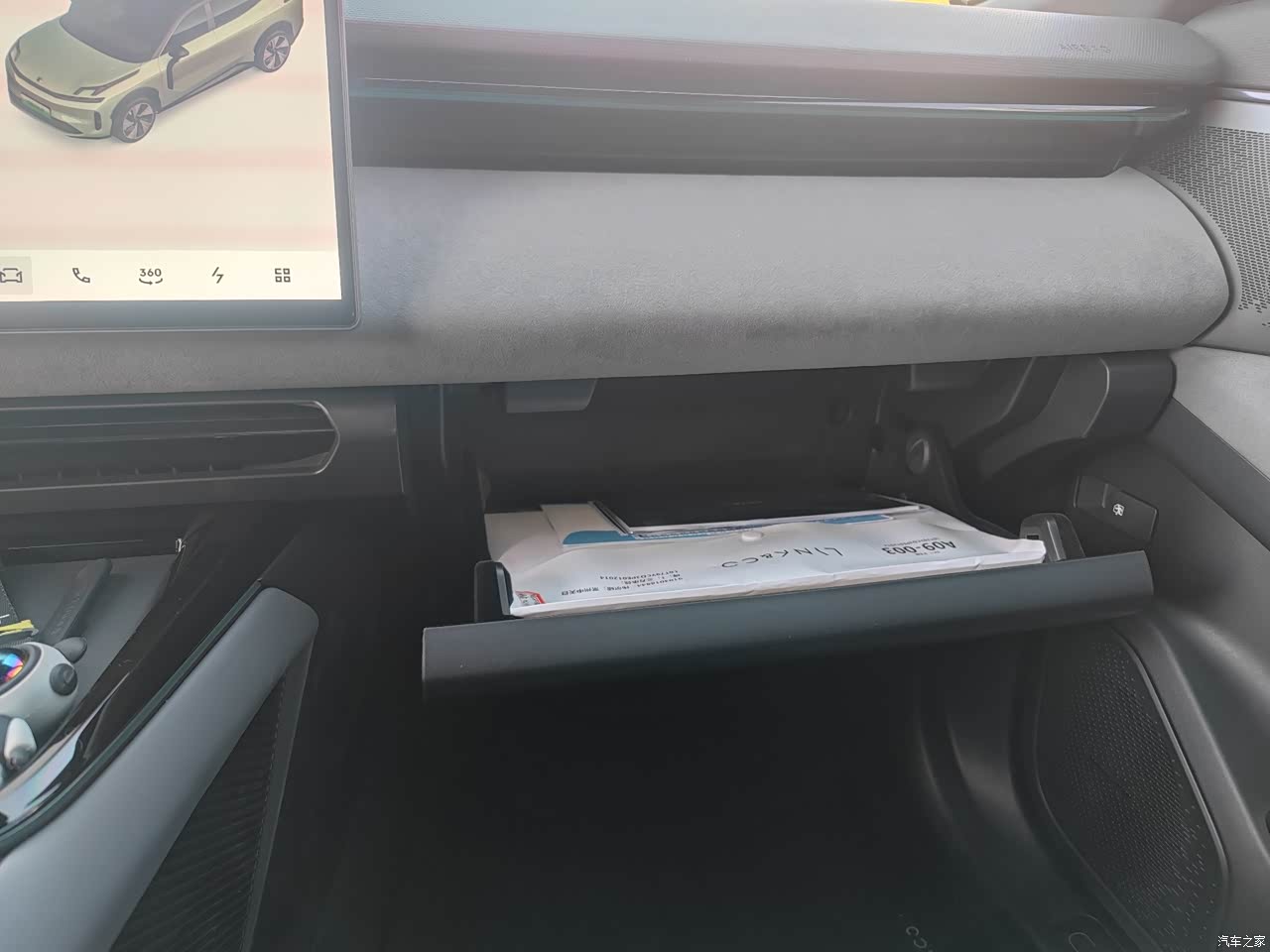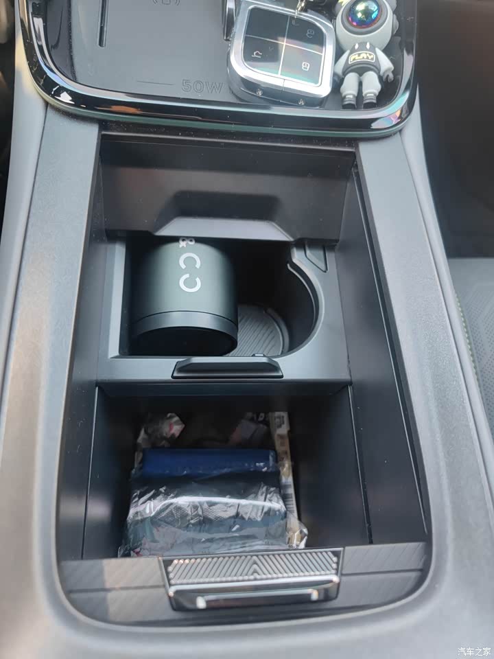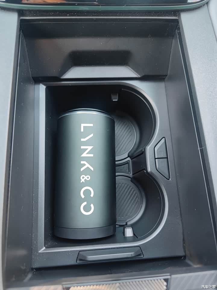 杯架平时处于隐蔽状态,打开可以平放一个LYNK&CO垃圾桶,也可以竖着放两个水杯,最隐蔽的是杯架底部还有一个隐藏空间,可以放很多小东西。