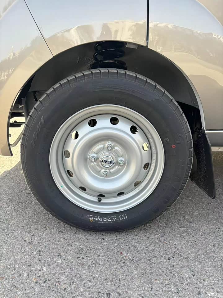 外观是双色的,看着也大气,现在大多数货车都是这个颜色,看着也顺眼,还有雾灯挺好,不管啥天气,起码安全感能高点,175的轮胎也挺搭配,悬浮的车顶设计后续按个行李架也挺方便!