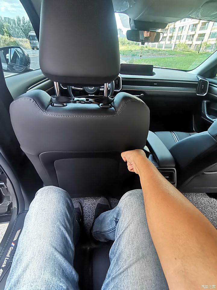 本人1.83米前排调到我富裕坐姿 后排还有2拳 这个空间没得说 头部空间一般 后备箱也很大 特别是后排座椅放倒 能直接躺下绰绰有余 前排空间没得说 足够用 手枕是双开很有高级感 里面空间也足够大
