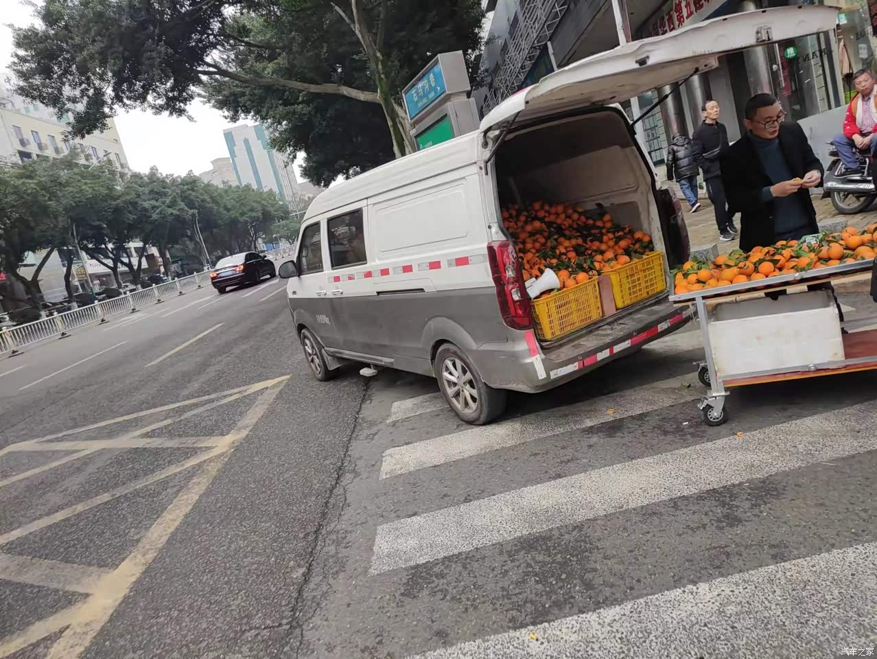 我的身材是属于偏胖的,身高有1米82。坐在这个车里面基本上还是可以施展开,然后头部的距离也是足够的。这个车重要是它的货箱的空间比较的宽大。这段时间呢我基本上都是拉的橘子,一车橘子的话可以拉一吨左右。