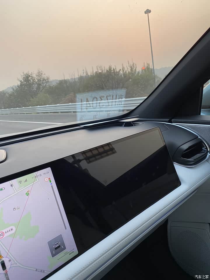 内饰主要说说这块大屏,看着很大气,副驾操作起来也很方便,一家出去,副驾和后排还能看着第二块屏卡拉ok,并且不影响主驾这边的地图,主驾角度看过去这块屏是黑的,物理上不上驾驶员分心,虽然有些残酷,但确实安全,很贴心。