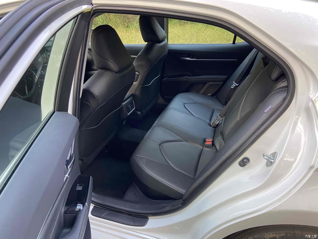 空间是真的超级大,一家人使用没有任何问题,尤其是后排空间,正常三个成年人坐进去,头部和腿部都有一定的富裕空间,然后主驾驶的座位也非常的宽敞,对于我一个大胖子来说,完全不会有局促感,虽然说凯美瑞只是一辆轿车,不是SUV,但驾驶时候的视野还是非常宽敞的。而且车子的储物方面也做的很好,车门板上的储物格特别大,还有很多能够利用到的地方也都做了挖孔储物的设计,平时使用起来十分的方便,后备厢的容积也挺大的,平时出去购物或者拉一些行李物品啥的也都非常的轻松