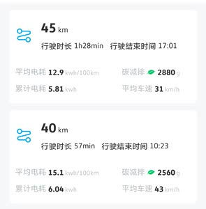 在海南,夏季开空调,能耗在15左右,80%电量有450续航,海南的冬季不算冷,平均气温在25-28之间,所以冬季不开空调,能耗在12左右,80%电量有510续航,海南的春秋能耗在13左右,80%电量有480续航,通勤上下班48公里,一般7-9天充一次,不喜欢急加速和急刹,平时开车也比较稳,这可能也是我的续航抗打的原因吧。