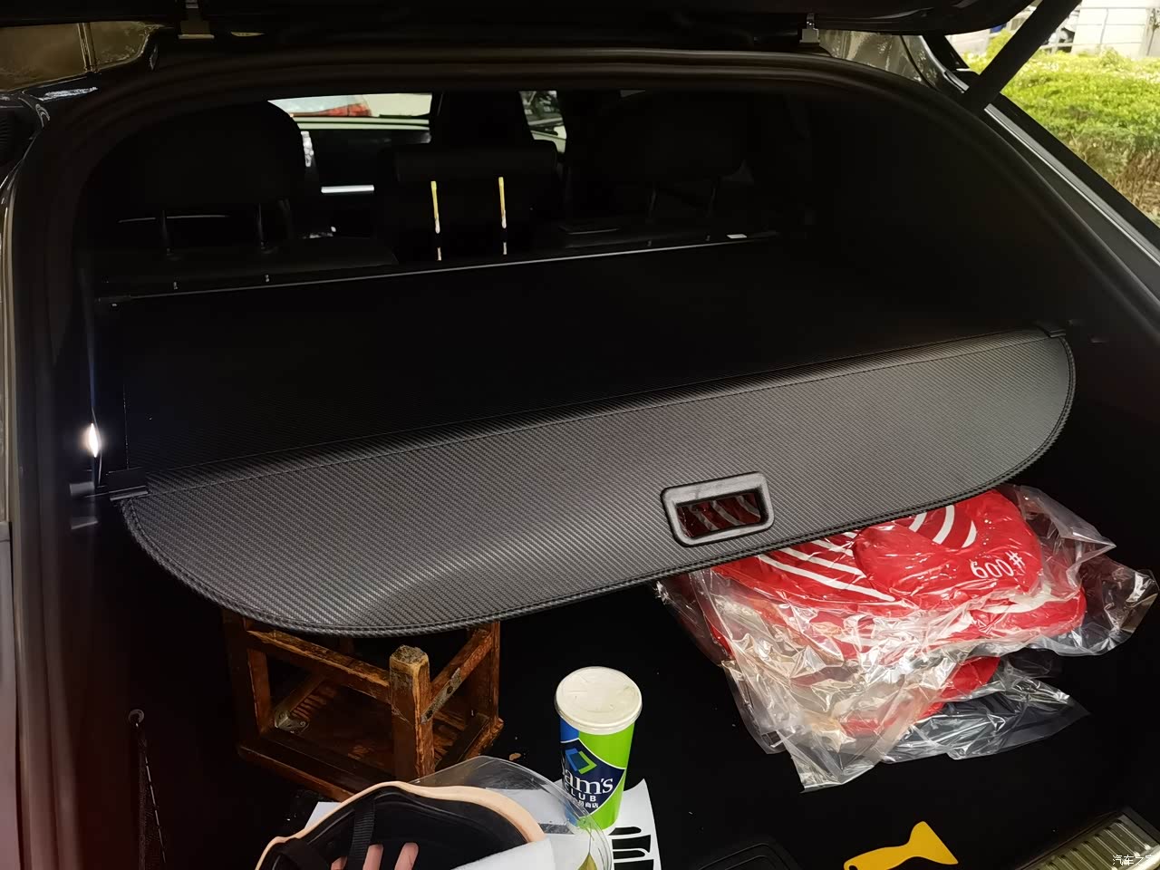 后备箱的储物空间很大,配上专用的遮物帘还可以分成上下两层,下层可以放四个大号的收纳箱,上层还有多的空间