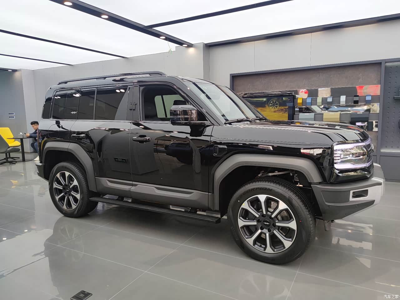 “BYD卫士”,颜值不用说,简直太棒了,黑色和灰色尤其好看,实车看着很招人喜欢,大但不突兀,整车看着比较有高级感。